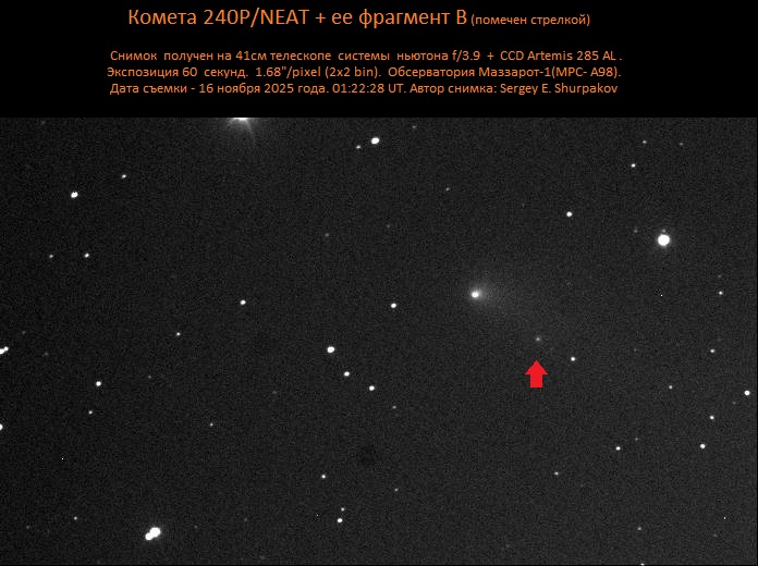 Комета активно наблюдалась в 2025 году на обсерватории A98 "Mazzarot-1"
